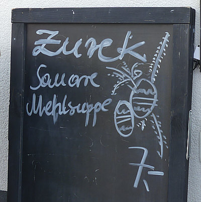 Dieses Schild stand ein bißchen abseits an einem Imbiss ... ich nehme mal an, dass es das dort an Ostern gegeben hat ... nie gehört ... man würde mich damit auch nicht anlocken können. Sauer macht bestimmt viele lustig, nur mich nicht.